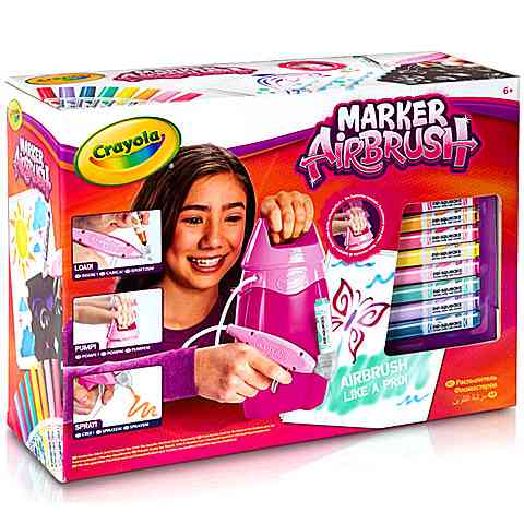 Az Airbrush technikát használva a gyerekek is egészen elképesztő alkotásokat készíthetnek! A Crayola festékszóróba egyszerűen csak bele kell helyezni a kiválasztott filcet, majd a tartály pumpálása után a ravaszt meghúzva már kezdődhet is az alkotás. A festékszóróból azonnal színes permet árad, amivel szinte bármit dekorálhatnak a gyerekek. A rózsaszín, kifejezetten a kislányok számára készült festékszóróval a papírlapokon a mellékelt sablonokkal készíthetnek formákat, de teljesen egyedi alkotásokat is készíthetnek.