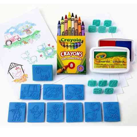 Készíts egy szuper tanyasi képet ennek a vagány nyomdának a segítségével! A Crayola készletével most rendkívül egyszerű dolgod van, hiszen a az állatokat és a traktort a különféle nyomdák használatával pillanatok alatt a papírra tudod varázsolni. A kis és nagy méretű nyomdáknak köszönhetően természetesen a legkülönfélébb, tanyavilágon megtalálható állatok közül válogathatsz. Ha már benépesíthetetted a lapodat, akkor előkerülhetnek a zsírkréták, hogy színekkel is megtöltsd őket!