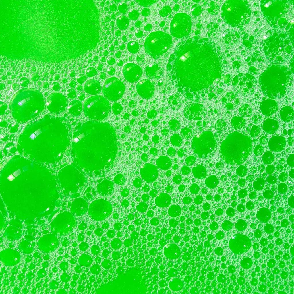 Élénk zöld habot adó gyerekhabfürdő kóla illattal