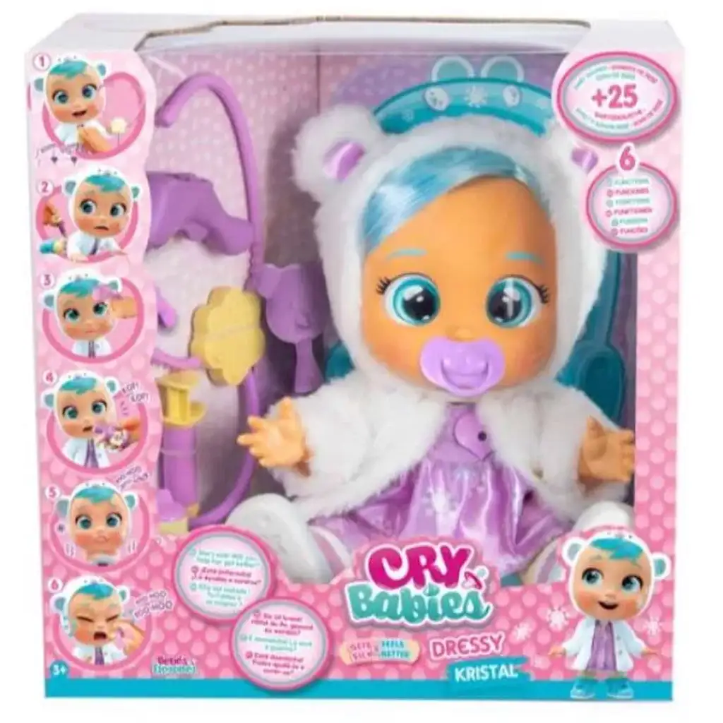 Ha a kisgyermeked rajong a varázskönnyes babákért, akkor a Cry Babies Dressy Kristal beteg baba garantáltan lenyűgözi majd. A játékcsomagban található Kristal baba gyengéd és puha ruhában érkezik, de most beteg és várja, hogy a kicsi gondoskodásával meggyógyuljon. A játék lehetőséget ad arra, hogy a kicsik ne csak anyukaszerepben próbálják ki magukat, hanem orvosként is szerephez bújhassanak.
