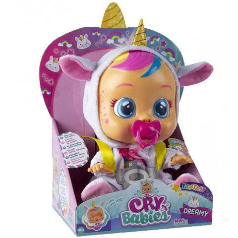 Egy imádni való könnyes babát szerezhetsz most be kislányodnak, akit első ránézésre elvarázsol majd, hiszen a baba egy aranyos unikornisos pizsamában érkezik, szivárványos hajjal. A baba viszont nem csak aranyos megjelenésével varázsolja el a gyermekeket, de különböző funkcióival is, hiszen ha Dreamy szájából kiveszed a cumit, egyből potyogni kezdenek a könnyei, így kislányodnak meg kell vigasztalnia őt. Ezen kívül a pocakját megsimogatva különböző baba hangokat hallat, amik még imádni valóbbá teszik őt.
