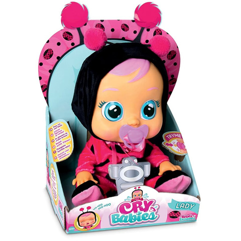 Lady nagyon ragaszkodik a cumijához, ezért, ha elveszed tőle, az cuki katica ruhás baba azonnal keserves sírásba kezd, miközben csak úgy potyognak a krokodil könnyek. Jól olvastad, az interaktív baba képes a valódi sírásra. A funkcióhoz vedd le a sapkáját, és töltsd meg a buksiján lévő speciális edényt vízzel. Ha megsimogatod a kicsi hasát, különböző babahangokkal fog reagálni a gondoskodásra, ahogyan arra is, ha megcsikized a kezét. Lady mellett még több cuki könnyes baba is vár rád kínálatunkban, akik már alig várják, hogy anyukájuk elringassa őket.