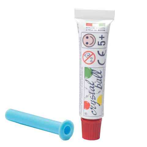 Crystal Ball buborékfújóval hatalmas műanyag buborékokat tudsz fújni melyek igazán tartósak akár kézzel megfoghatóak, dobálhatóak. Nyomj egy mogyorónyi sűrű pasztát a fújószálra és kezd el óvatosan felfújni a buborékod. Válassz színt, hiszen a különböző színű tubusokkal más más színű buborékot tudsz fújni.