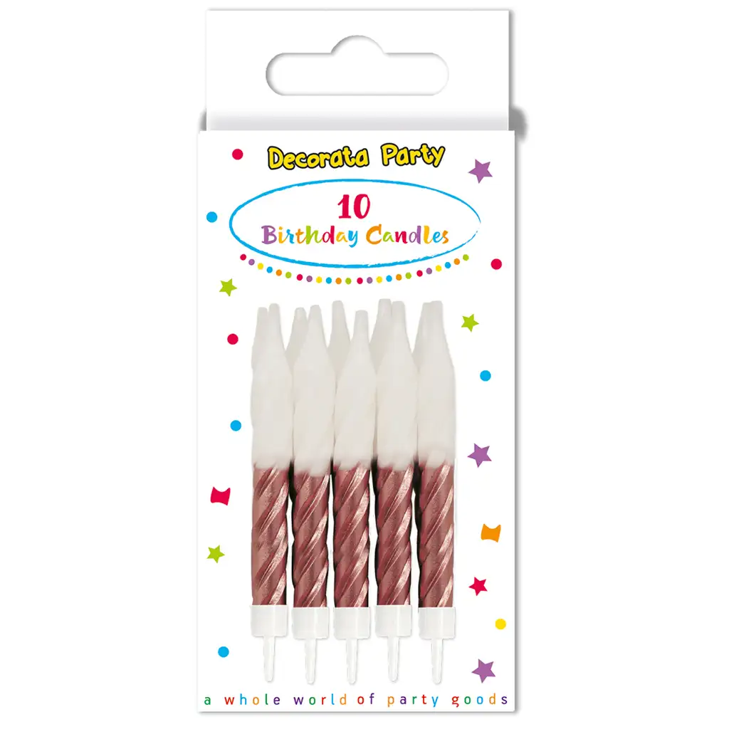 Varázsolj stílusos ünnepi hangulatot a szülinapi tortára ezzel a 10 darabos csavart születésnapi gyertya szettel! A klasszikus spirál formájú gyertyák elegáns megjelenést kölcsönöznek a tortának, miközben a praktikus talpaknak köszönhetően könnyen és biztonságosan rögzíthetők a sütemény tetejére.