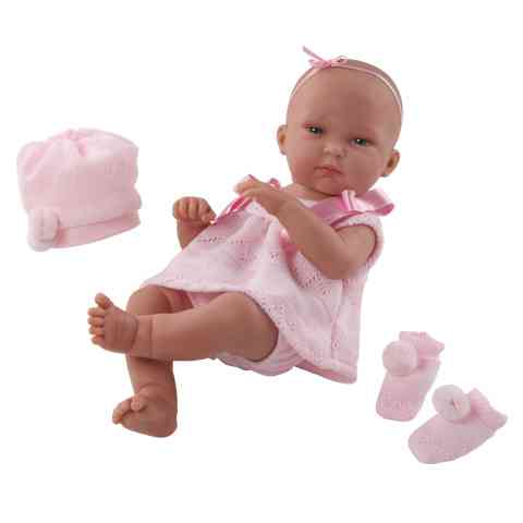 Ez a kedves arcú, csodálatos baba olyan igényességet képvisel, mely minden, vele játszó gyermeknek komoly játékélményt nyújt. A baba ruhája anyagában mintázott, váll részét pedig vastag, rózsaszín szatén szalag díszíti. A tunikához tartozik egy szintén rózsaszín buggyos nadrág is. A ruházathoz pom-pommal díszített bájos baba sapka és zokni is tartozik, melyek még babásabbá, vidámabbá teszik az összhatást. A baba gyermekbarát műanyagból készült, tehát mint anyagában, mint kidolgozásában megfelelő ajándék egy babázni szerető kislány számára.