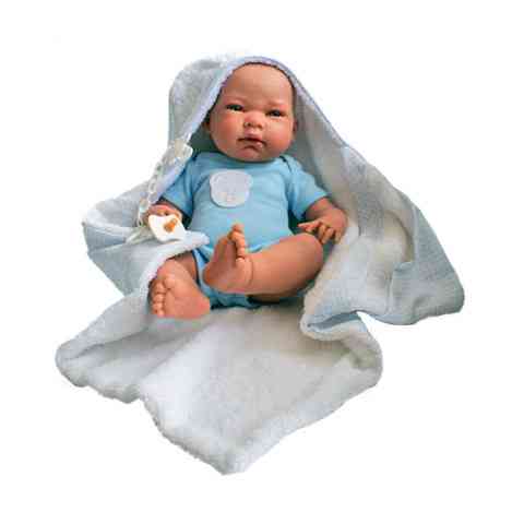 Ez a baba egy jutalomjáték azoknak a gyerekeknek, akik nagyon szeretnek babával játszani. A baba olyan magas szinten van kidolgozva a legapróbb részleteiben, ami komoly játék élménnyel gazdagítja a vele játszó gyermeket. A baba ruházata egy egyrészes rugdalózó, továbbá tartozékként tartozik hozzá egy cumilánccal, csíptetővel ellátott cumi, és egy igényesen megvarrt fürdőlepedő is. A baba jó választás azoknak a gyermekeknek, akik közelében kisbaba érkezése várható, hiszen a gyermek felkészülhet a játék által az eseményre. A játék gyermekbarát műanyagból készült.