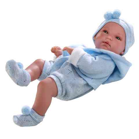 Csecsemő baba kék kardigánban 33cmCsecsemő baba kék kardigánban 33cm