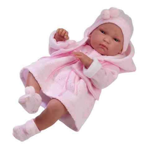 Ez a kislány ruhás csecsemő baba minden kislányt arra késztet, hogy karba vegye, ringassa, dédelgesse. Ennek oka, hogy a baba részleteiben és egészében is szinte tökéletes mása egy csecsemőnek. Ruházata a klasszikus csecsemő ruházatnak megfelelő, mely áll egy anyagában mintázott, szatén szalaggal díszített ruhácskából, egy pom-pommal díszített zokniból és sapkából, illetve egy kapucnis, bélelt kabátkából. A baba kezei, lábai és feje kétirányú mozgásra képesek. Ez a játékbaba ajándékozásra kiváló ötlet, hiszen kidolgozása igényes, élethű.