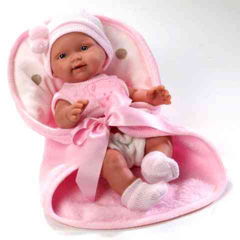 Csecsemő baba rózsaszín sapiban, takaróval 26cm értékelések: