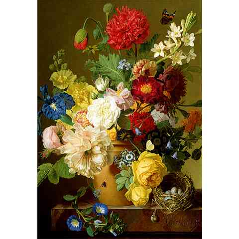 Igazi csemege lehet ez a kép a virágkedvelőknek, vagy azoknak akik szeretik a színes puzzle képeket. Ezen a kissé festmény hatású képen a virágok hatalmas színkavalkádot alkotnak. Ennek a képnek a kirakása hosszú ideig leköti majd a figyelmét. Az elkészült kép méltó dísze lehet a szobája vagy az irodája falának. A rengeteg egymástól jól elkülöníthető rész miatt a kirakása nem különösebben nehéz. Kezdőknek jó tanács: először a kép keretét kell kirakni, majd onnan befelé haladva a legkönnyebb kirakás.