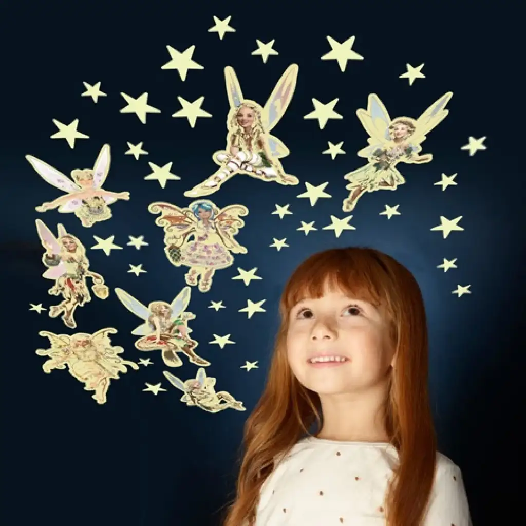 Hagyd, hogy a mesebeli tündérek vigyázzák az álmodat és segítsenek neked a tájékozódásban a teljesen sötét szobában is. Ehhez nincs is másra szükséged, mint erre a csomagra, amiben összesen harmincöt csillagot és szárnyas tündérkét találsz, amelyeket a kedved szerint ragaszthatsz fel a falra vagy a plafonra. A különleges foszforeszkáló anyagnak köszönhetően a lámpaoltás után a csillagok és a tündérek halvány fénnyel világítani fognak, így kiválóan használhatod őket tájékozódási pontként.