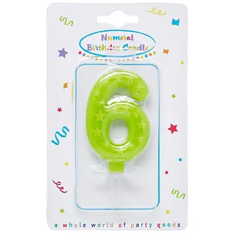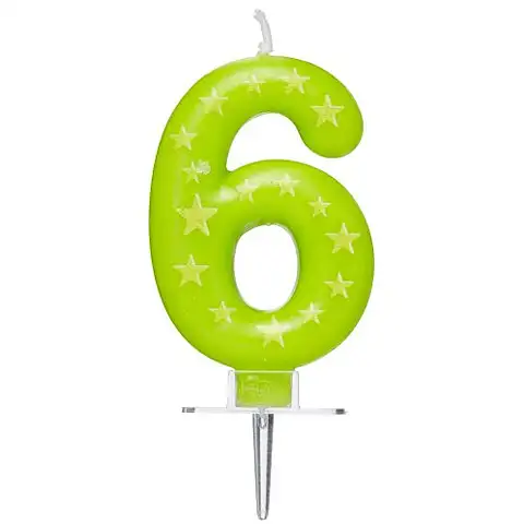 A hatodik vagy épp a tizenhatodik születésnap alkalmával is remek választás ez a színes számgyertya, mely zöld alapszínén sárga csillagokkal díszített. A viaszból készült számgyertya lassan ég majd le a tortán, így lesz idő elkészíteni az ünnepi fotókat is. Helyezd a gyertya aljára a műanyag talpat, melynek segítségével könnyen a tortába szúrhatod azt még meggyújtás előtt.