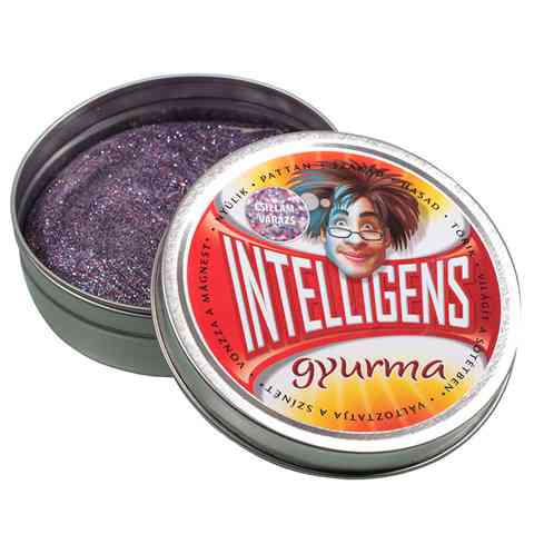 Ennek a gyurmának nem is lehetett volna találóbb nevet adni, hiszen a csillámló lilás szint mint valami csodálatos varázslat szinte elbűvöli az ember szemét, és a legkülönlegesebb formák kialakítására sarkall. Az elképesztően élénk színe mellet az intelligens gyurmák számtalan tulajdonságukkal túlmutatnak a hagyományos társaikon, hiszen ezek a gyurmák soha nem száradnak ki, akár ráteszed a doboz fedelét, akár nem. De például, ha egy olyan nagyon erős hatás éri, mint mondjuk egy kalapácsütés, akkor képes porcelánként összetörni, de persze a darabokat utána újra összegyúrhatjuk, hogy új figurát alkossunk belőle.