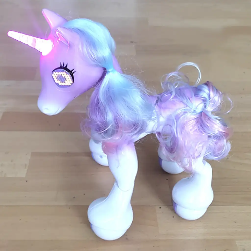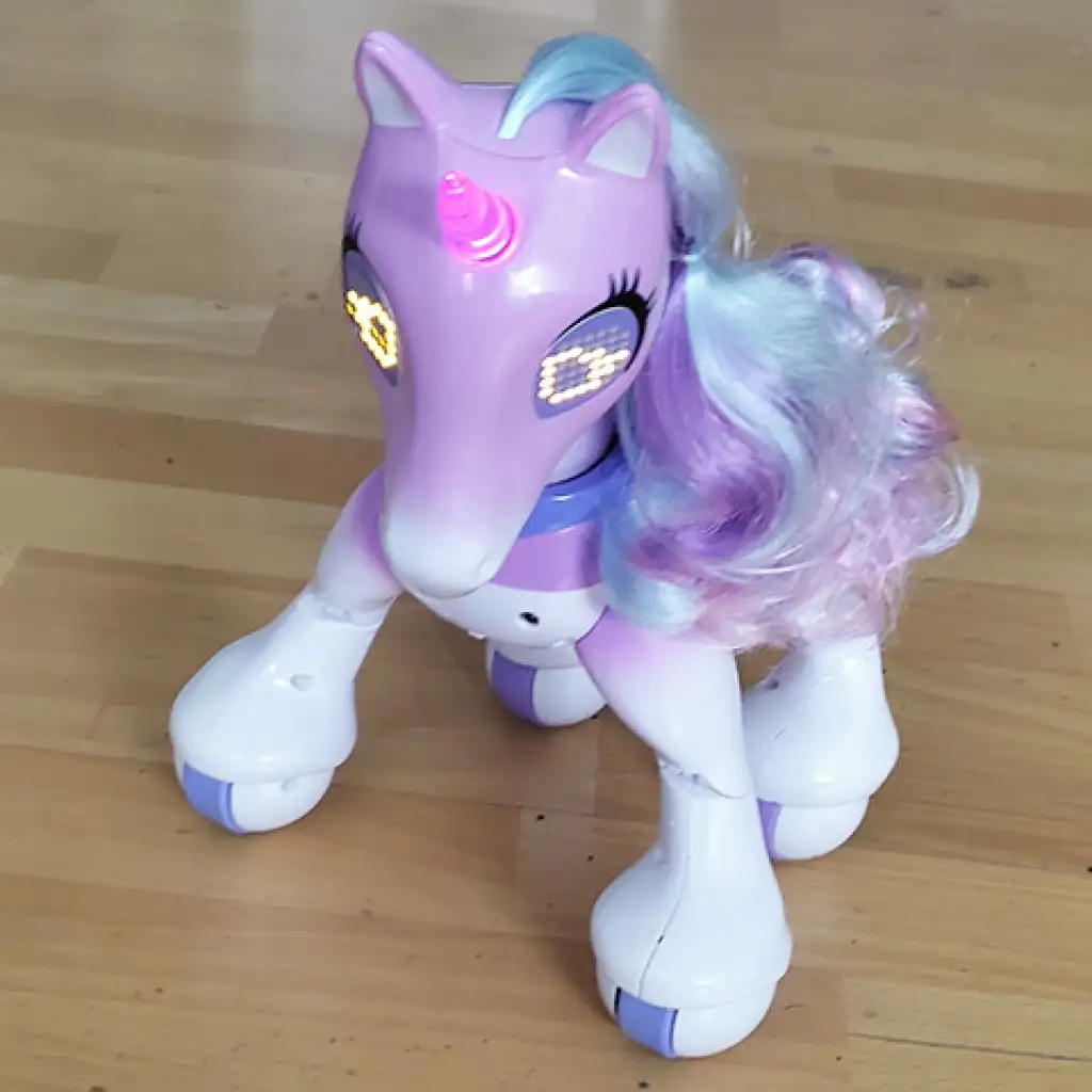 Megérkezett a csodálatos unikornis, aki alig várja, hogy játszhasson veled. Minden gyermek megörvendene egy ilyen játéknak, amely első sorban érdekes mivel egy unikornisról van szó, másodjára pedig megemlítjük, hogy egy távirányítóval ellátott robotról van szó. A játék több funkcióval rendelkezik, ugyanis a guruló lábán haladni tud előre, körkörösen, ezen kívül táncol, énekel és érintésre is reagál. Mindezek a funkciók egy izgalmas játékot biztosítanak majd gyermeked számára, aki imádni fogja a kis állatot.