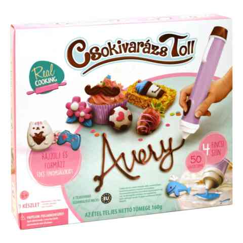 Készíts olyan finomságokat, amilyeneket még soha senki nem csinált. A Csokivarázs Toll egy olyan különleges toll, aminek a segítségével csokivonalakat húzhatsz, amelyek szépen kihűlve megkeményednek, így akár valódi három dimenziós formákat is készíthetsz a segítségével. A készletben található sablonoknak köszönhetően megannyi különféle figura közül válogathatsz, ráadásul a készletben további színeket is találsz, hogy az alkotásaid ne csak ötletesek, hanem színesek is legyenek. Rajzolj és Formázz Édes Finomságokat, az 50 különféle műanyag öntőforma segítségével.