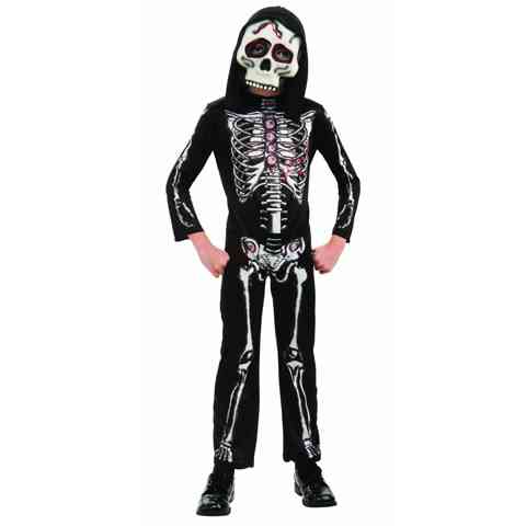 Az ijesztgetés mestereinek készült pompás jelmez. A csontváz ruha teljes egészében felhúzható, így csak egy fekete cipőt kell hozzá találnunk otthon. Még az arcot is egy koponyás maszk takarja el. UV fényben kiváló lehet a barátok megrémítésére, hiszen ilyenkor tényleg csak a csontváz látszik az egészből.