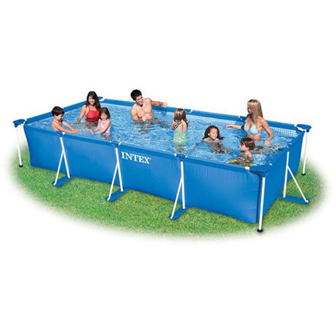 A téglalap alakú medence sokkal kényelmesebb mint a kör alakú és minden korosztály számára szórakoztató játszást vagy esetleg pihenést biztosít. Nagyon gyorsan és egyszerűen felállítható és a csővázas lábainak köszönhetően stabillá teszi. A képen látható medence méretei 450x220x84cm, így egész biztos, hogy az egész család elfér benne ami jó hangulatot és szórakozást biztosít mindenkinek. 7127 liter víz fér bele 90 százalékos töltöttségi szinttel. Az Intex medencék további előnye, hogy leeresztve és összehajtva nagyon kis helyet foglal.