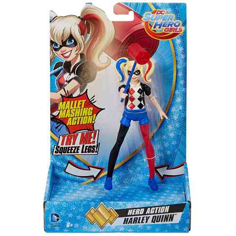 Harley Quinn a törékeny nőcske, Joker leghűségesebb követője éppen ezért aligha lehet őt jóságos szuperhősnek titulálni, de kétségtelen, hogy amikor harcra kerül a sor Harley Quinn úgy verekszik, hogy azt még a férfiak is megirigyelnék, arról nem is beszélve, hogy a hatalmas kalapácsát is nagyon jól forgatja. A Mattel DC Super Hero Girls babáival élmény a játék, hiszen a tizenöt centis baba a legapróbb részletekig a szuperhősök alapján készültek, ráadásul a mozgatható hiszen ha összenyomod a lábait, akkor lesúlyt a hatalmas kalapácsával.