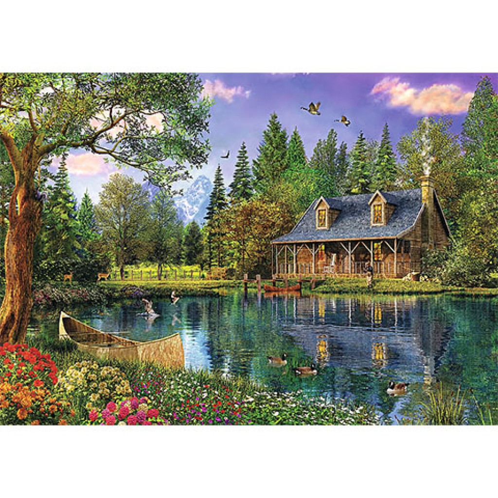 Fent a hegyekben, a fenyőerdők mélyén távol a város zajától igazán kikapcsolhat és lenyugodhat az ember. Ha mindezt egy tóparton teheti, egy csodálatos vadászházban, akkor tényleg nem kívánhatunk magunknak ennél többet. Ezzel a kirakóssal pont egy ilyen képet készíthetünk magunknak, és miközben mind a 4000 darabnak megtaláljuk a pontos helyét magunk is lenyugodhatunk és kikapcsolódhatunk egy kicsit a mindennapos rohanásból. A Trefl puzzle darabok tökéletesen illeszkednek és a kompromisszummentes, professzionális nyomdai eljárásoknak köszönhetően az elkészült kép lélegzetelállítóan éles és színpompás.