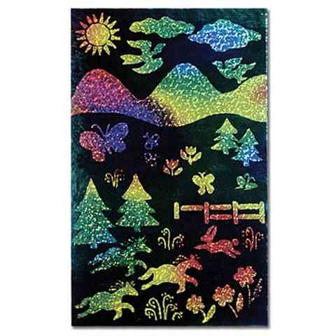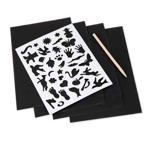 Egy különleges eljárással készült papíron élheted ki a kreativitásodat. A papírlapok ugyanis csodás színekben pompáznak, ha ez elsőre nem is látszik. Egy fa rajzoló ceruzával tudod lekaparni a fekete viasz szerű anyagot, ami alatt már meg is láthatod a szivárványos anyagot. A papír lapokhoz egy forma sablon is tartozik, melyeket csak körbe kell karcolnod, és már láthatod is az aranyos mintákat. Ezzel a kreatív játékkal fejleszthetjük a kéz és szem koordinációját, és a finom motorikus képességeket.