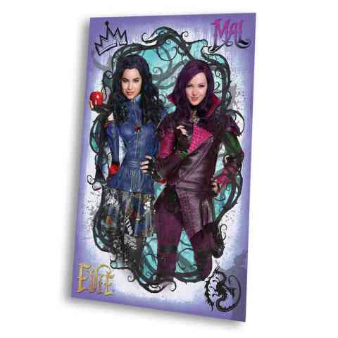 A Descendants, vagyis Utódok az utóbbi idők egyik legnagyobb Disney sikere, melyben a hajdanán híres meseszereplők gyermekeinek izgalmas történeteit követhetjük nyomon. Természetesen a mesében nem csak a jók tűnnek fel, de az egykoron gonosz terveket dédelgető szereplők is feltűnnek. Ezen a látványos takarón a mese két legnépszerűbb szereplője látható, akik nem mások mint Demóna és a gonosz boszorkány lányai. A takaró 100x150cm-es méretével és puha, minőségi kialakításával nem csak, hogy csodás dísze lehet a szobának de teljes értékű használati eszközként is szolgál.