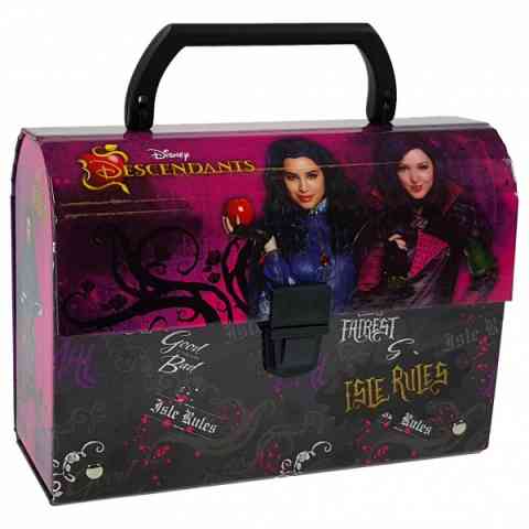A Descendants, vagyis Utódok az utóbbi idők egyik legsikeresebb Disney mesesorozata, melyben a korábbi híres mesehősök gyermekeinek életét követhetjük nyomon. Ezen a különleges uzsonnás dobozon a Descendants logó, valamint két főszereplő, a boszorkány és Demóna lánya látható. A nyitófüllel ellátott doboz rendkívül kemény, ellenálló karton anyagból készült, ami könnyű, ugyanakkor strapabíró. A táskát laminálással látták el gyárilag, így a folyadékokkal és karcokkal szemben is védve van. Óvodába, iskolába egyaránt tökéletes választás.