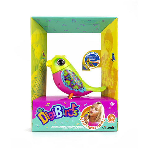 Ilyen okosak a DigiBird által gyártott madarak is, ebben az esetben ez a papagáj, amelyik csipogni tud, simogatásra énekelni kezd és egyes kérdésekre még választ is ad. Ezek a játékok a fejüket és a csőrüket tudják mozgatni és a legérdekesebb, hogy az egész kollekció madarait össze lehet hangolni, amelyek több mint 30 dallamot tudnak énekelni. Egy csíptetője is van, amely segít abban, hogy a ház akármelyik pontjába elhelyezd.