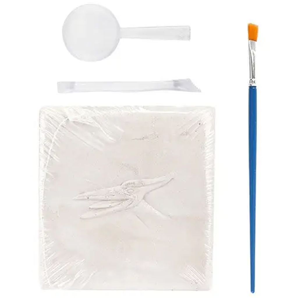 A szett tartalmaz minden szükséges eszközt: ecsetet, vésőt és nagyítót is, amellyel a gyerekek precízen, lépésről lépésre tárhatják fel a rejtett csontokat. A feltárás után az alkatrészekből egy 3D-s dínómodellt lehet összeállítani, amit később a polcra is kitehetnek büszkén. Minden készlet különböző dinoszauruszt rejt – például Tyrannosaurus Rex, Stegosaurus, Triceratops, Brachiosaurus vagy Pteranodon –, így minden darab egy újabb felfedezés!