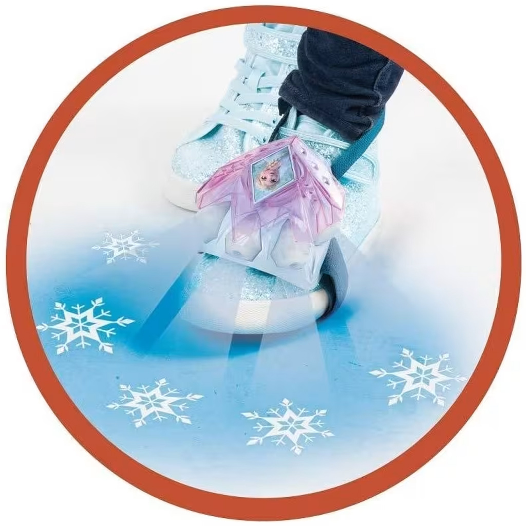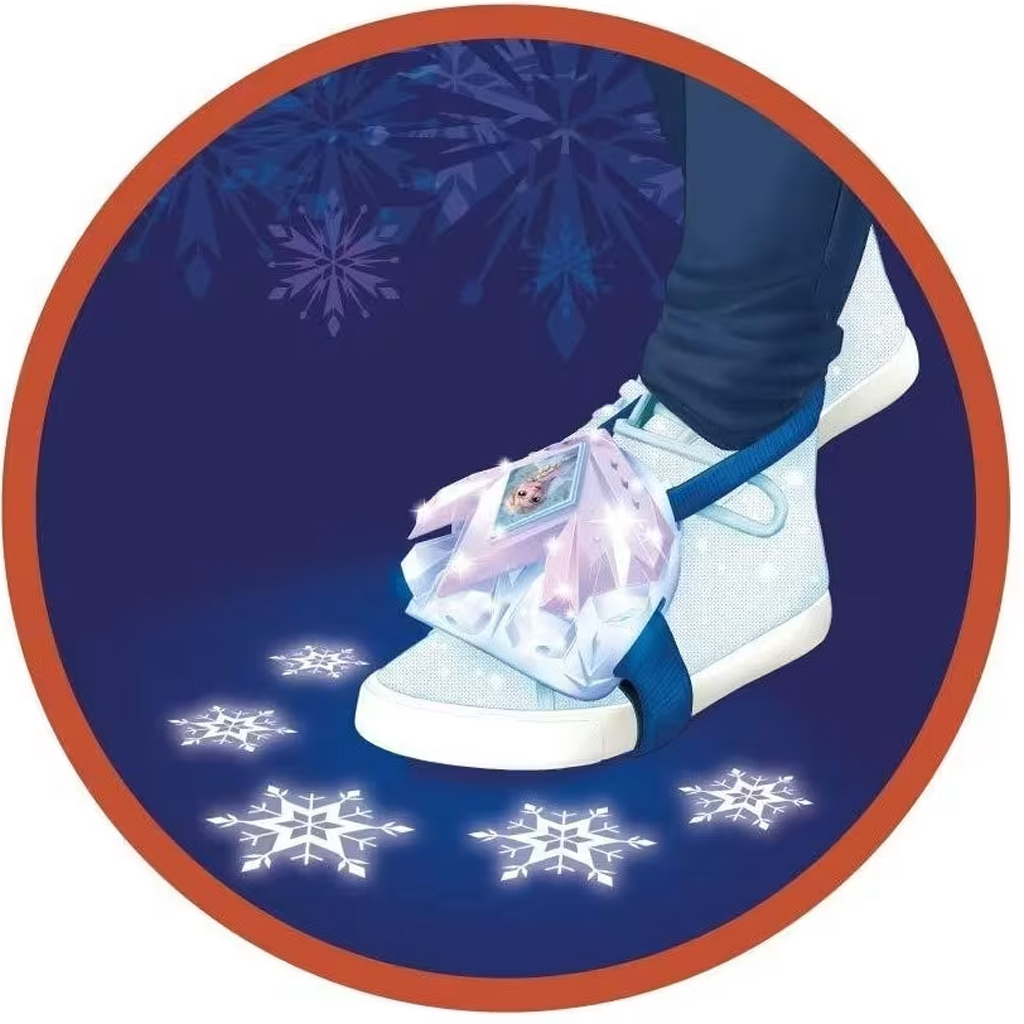 A bokapánt könnyen rögzíthető a cipőre vagy bokára, így a gyerekek szabadon mozoghatnak benne. Ahogy lépkednek, a beépített vetítő életre kel, és ragyogó jégvirágokat jelenít meg, mintha Elsa varázslata kísérné őket minden lépésnél.