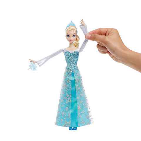 Íme egy fantasztikus baba a Jégvarázs mese rajongóinak. Elza a mágikus kezével bármikor havat, jeget, zúzmarát tud varázsolni, melynek az irányítása gyakran kicsúszik a kezéből. Ez a baba annyiban egyedi hogy a karját felemelve a másik karja is megemelkedik ezzel egy időben pedig a jégvarázspálca világítani kezd, mely beragyogja majd a körülötte lévő teret, majd kilövell. Ezzel felidézve azt a különleges pillanatot amikor Elsa szabadjáéra engedte hatalmát.