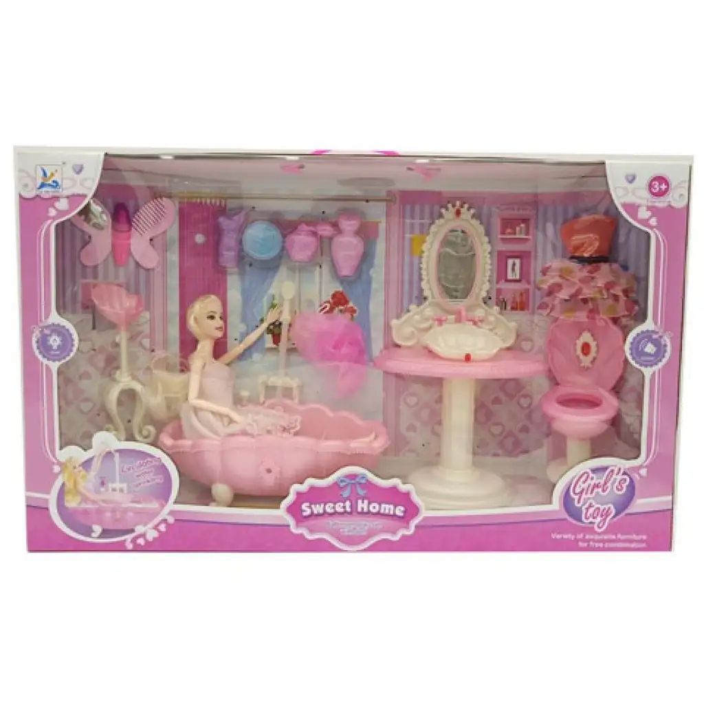 Divatbaba fürdőszobával és kiegészítőkkelDivatbaba fürdőszobával és kiegészítőkkel
