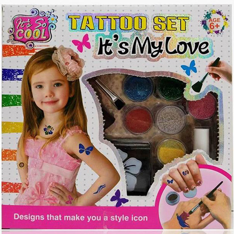 A kislányok körében a mai napig nagyon népszerűek a csillámtetoválások, ami nem is meglepő, hiszen nagyon szép és csillogó díszítéseket készíthetünk. Ebben a csomagban minden megtalálható, ami egy mutatós csillámtetkó elkészítéséhez kell. Nincs is más tennivaló, mint kiválasztani a megfelelő mintát, ami bármi lehet a virágtól a pillangóig, aztán a ragasztó anyag felkerülhet a bőrre, és végül ebbe kell beleszórni a csillámos díszítő port, ami a ragasztóban megragadva kiadja a választott mintát.