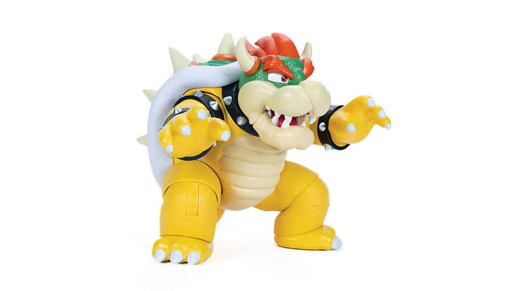 Ez a 30 centiméter magas Bowser figura különleges tűzlehelet-fényhatással rendelkezik, amely a szájából árad. 13 mozgatható ízülettel van ellátva, így számos pózba beállítható. Több mint 15 különböző hangot ad ki, amelyeket a karmaiban és a páncélján található gombokkal lehet aktiválni. Ez a figura nemcsak a gyerekek, hanem a gyűjtők számára is izgalmas játékélményt nyújt, hiszen részletgazdag kidolgozása és interaktív funkciói révén igazán élethűen kelti életre Bowser karakterét.