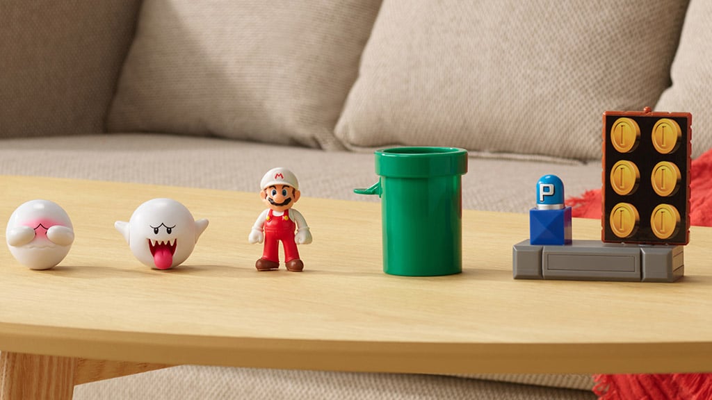 Lépj be a játékidő hangulatába a Forgó Szellemház Játékszettel! Ez a 2,5 hüvelykes méretarányú játékszett elhozza a gyerekek nappalijába a legendás Super Mario pályát, és egy interaktív ládát is tartalmaz, amelyben egy rejtett aranyérme található, körülötte pedig Boo szellemek ólálkodnak. Még több szórakozásért a gyerekek bővíthetik is a játékszettet a Forgó Szellemház Diorámával, amelyben Tűz Mario, Boo, egy vadonatúj Félénk Boo, egy zöld cső és egy gombbal aktiválható P-Kapcsoló is helyet kapott. Ezek a fantasztikus szettek idén ősszel jelennek meg a legnagyobb áruházakban, így minden Super Mario rajongó számára elérhetőek lesznek!