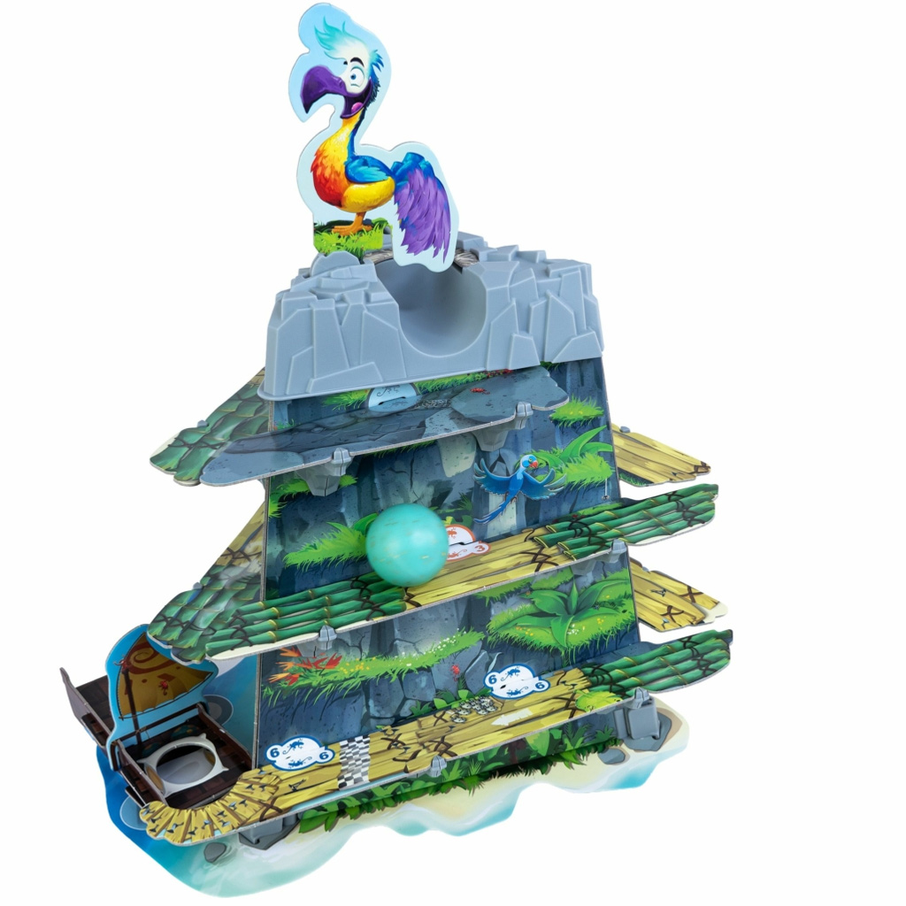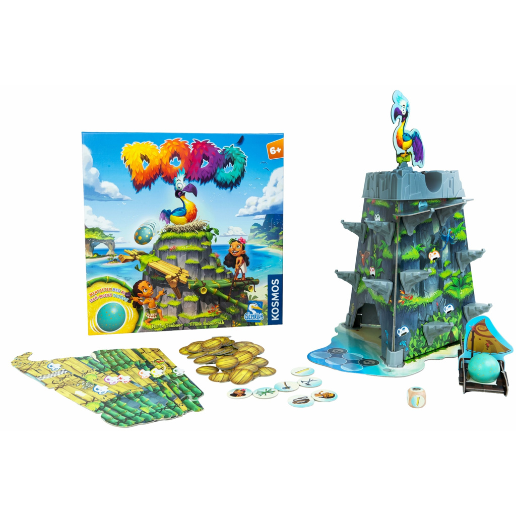 A Dodó társasjáték egy izgalmas és látványos ügyességi játék, amely azonnal magával ragadja a gyerekeket és a szülőket is. A játék középpontjában a mókás dodó madár és a guruló tojás áll, amelyet ügyesen kell irányítanotok a pályán lefelé. A színes, részletgazdag játékelemek – mint a hegyoldalt idéző pálya, a kis csónak és a különleges jelölők – igazi kalandhangulatot teremtenek, mintha egy egzotikus szigeten játszanátok.