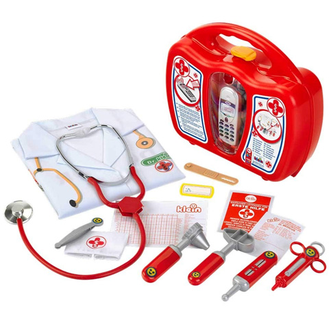 A betegségek és az orvosok örök harcába léphetsz be ennek a táskának tartalmával. Kapj fel a fehér orvosi köpenyt, vedd magadhoz ezt a nagyszerű orvosi készletet, és máris mehetsz gyógyítani. Persze a baj megállapításához egy átfogó vizsgálatra van szükség. Még szerencse, hogy a táskában minden van amire csak szüksége lehet egy kis doktornak. A lázmérő épp úgy a készlet része, ahogy az orvosok nélkülözhetetlen kelléke a sztetoszkóp is, amivel meghallgathatjuk, hogy a beteg tüdejében is rendben van-e minden. Amint megvan a diagnózis máris írhatjuk a receptet, és a betegnek nincs más dolga, mint meggyógyulni, hála a jó orvos munkájának.