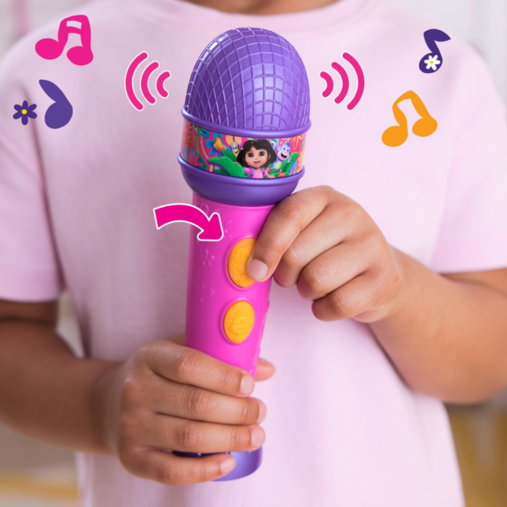 Dóra, a felfedező tematikájú, zenélő mikrofon kisgyerekeknek