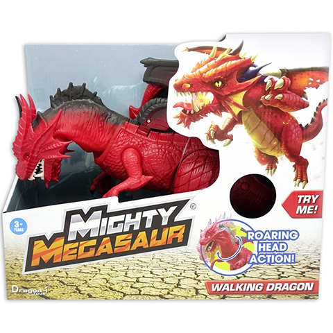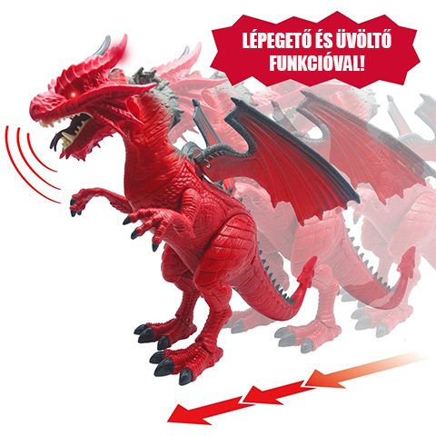 Minden gyerek szívesen talál ki olyan izgalmas kalandokat amelyeknek egy hatalmas sárkány lehet a főszereplője, és most itt a lehetőség, hogy ehhez egy megfelelő játék is társuljon. Ez a hatalmas, lépdelő és füstöt okádó Megasaurus Sárkány most csak arra vár, hogy kialakítsa a fészkét valamelyik gyerekszobában. Mindent tud, amit egy igazi csúcsragadozótól elvárhatunk. Félelmetesen üvölt, földrengető módon lépdel és szemei rémisztően világítanak. Járni is képes, és közben folyamatos morgásából biztosra vehető, hogy éhes, és hamarosan támadni fog. A félelmetes sárkány harap, és a szárnyait is tudja mozgatni! A játék működéséhez három darab AA ceruzaelem szükséges, amit a csomagolás tartalmaz.