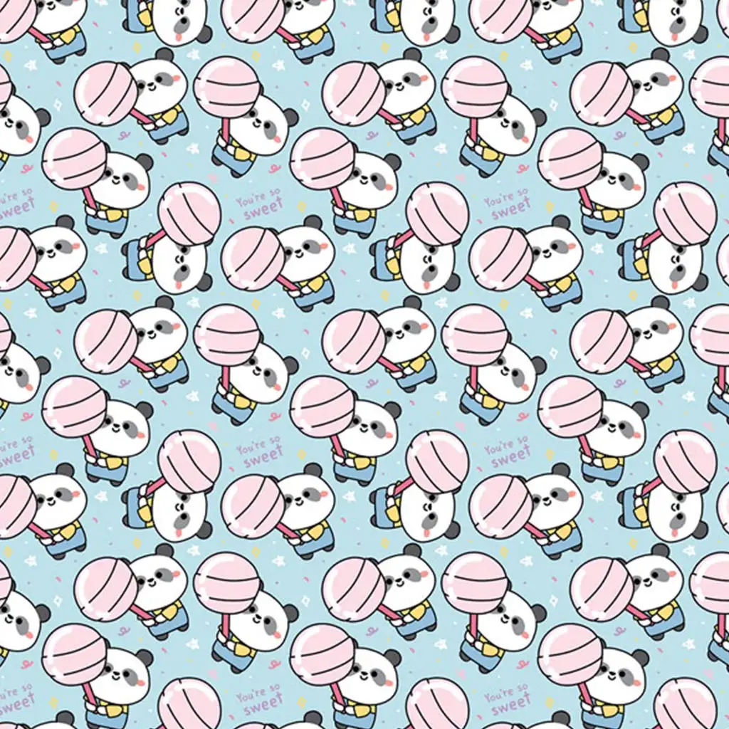 A halványkék háttér tökéletesen kiemeli a fekete-fehér pandákat és a pasztell rózsaszín nyalókákat. Az apró csillagok, szívecskék és „You’re so sweet” feliratok még cukibbá és szerethetőbbé teszik ezt a mintát. A modern, rajzfilmszerű dizájn különösen népszerű lehet gyerekek, tinédzserek és a cuki stílus kedvelői körében.