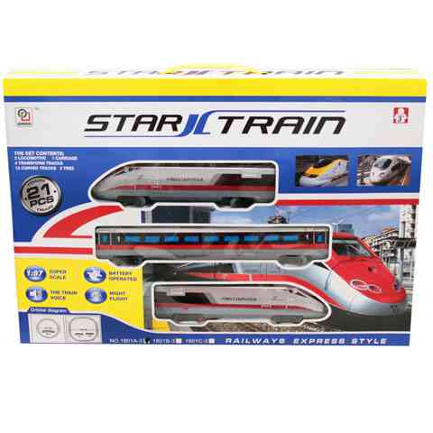 Építs egy igazán modern vasúti pályát, és indítsd útjára az első szerelvényedet. A dobozban minden megtalálható, amivel az első modellvasútadat megépítheted. A készletben tizenkét íces és négy egyenes sínszakasz található, amelyeket kedved szerint variálhatsz. Szintén a készlet része egy rendkívül áramvonala személyvonat is, aminek mindkét végén egy mozdony található, középen pedig egy személyszállításra alkalmas vagon. A készlet két fát is tartalmaz, amivel még élethűbbé tudod tenni a vonatmodelledet, ami hangokkal és fényekkel válik még valóságosabbá.