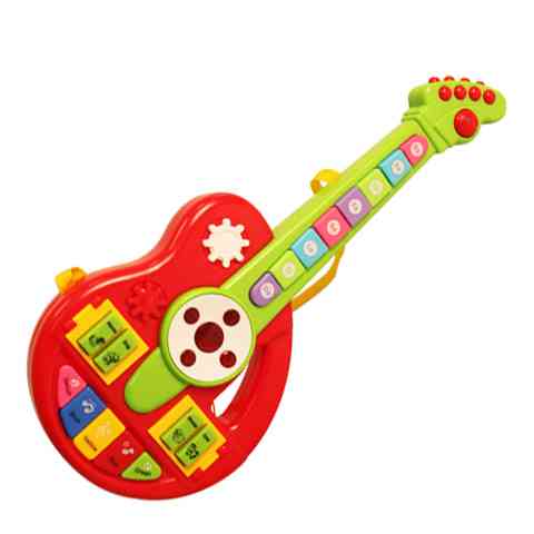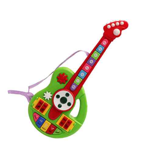 Ez a gitár elemmel működik. A legkisebbek nagy örömére ez a gitár báros hangokat, érdekes handhatásokat képes produkálni. A gitár teljes felületén elhelyezkedő billentyűk segítségével. A gitár emellett kétféle színvilágban kapható, lányos piros, és fiús almazöld színben. A játék fény kibocsátására is képes, így teljesen elbűvöli a gyermekeket.