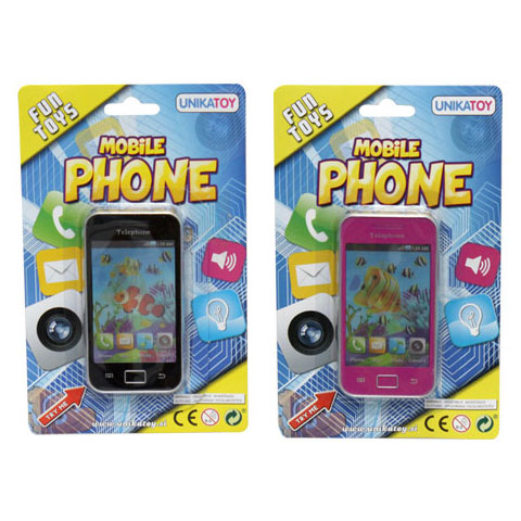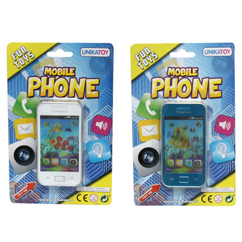 A szülők okostelefonjára hasonlító elemes,műanyag gyermekkéz méretű készülék. Elem van benne.