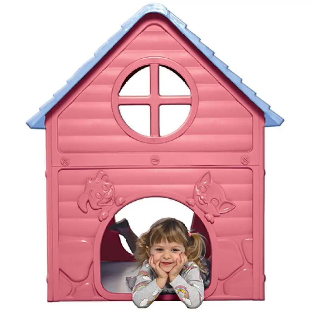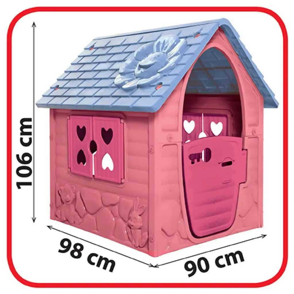 A rózsaszínű játszóház kiválóan alkalmas akár kültéren, akár beltéren való használatra és a kimondottan lányoknak készített színvilágba gyermeked biztosan azonnal beleszeret majd. Nagy belső terének köszönhetően kényelmesen elférhet benne, akár kedvenc játékait is magával viheti házikójába. A kis ház funkcionális ajtóval és ablakkal is rendelkezik, így a gyerekek valóban elzárkózhatnak, ha egy kis magányra vágynak. Végül de nem utolsó sorban meg kell említeni, a ház oldalán és tetején megfigyelhető állatos és virágos mintákkal könnyedén belopja magát a gyerekek szívébe.