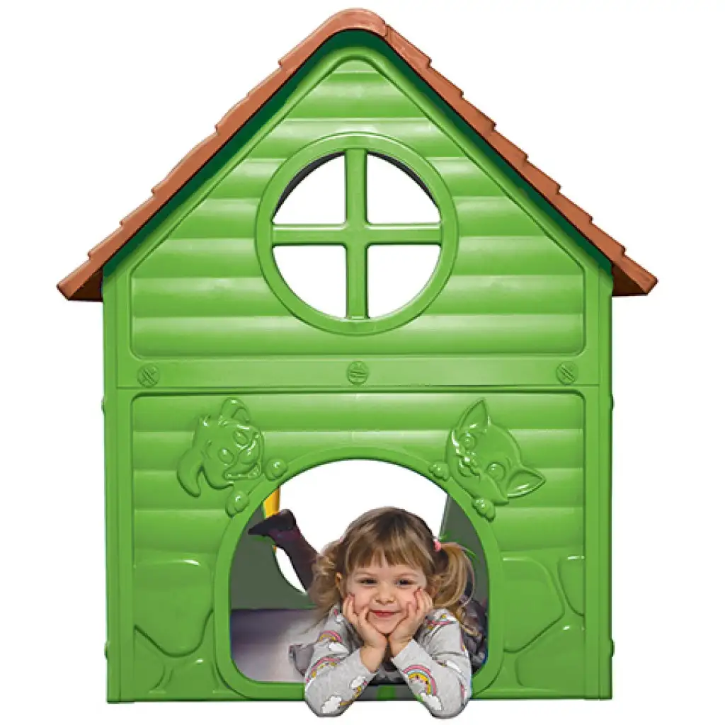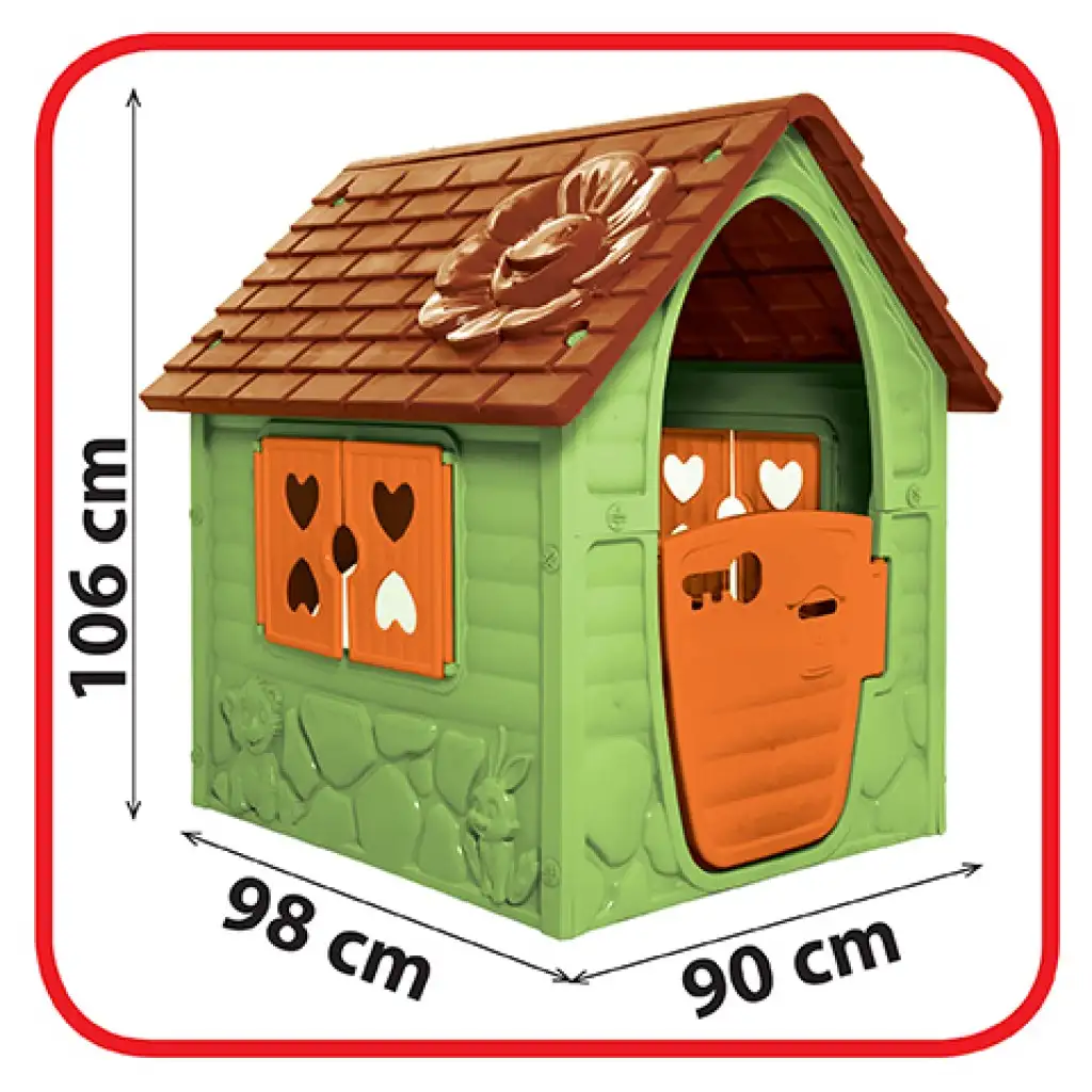 Szerezd be gyermeked számára ezt a kiváló minőségű műanyagból készült házikót amely kültéren és beltéren is használható így télen-nyáron játszhat vele gyermeked. A kis ház funkcionális ajtóval és ablakkal is rendelkezik, így a gyerekek valóban elzárkózhatnak, ha egy kis magányra vágynak. Végül de nem utolsó sorban meg kell említeni, a ház oldalán és tetején megfigyelhető állatos és virágos mintákkal könnyedén belopja magát a gyerekek szívébe. Az összeállított ház alapterülete 90x98 centiméter, ami elég nagy ahhoz, hogy a gyerekek kényelmesen elférnek benne akár állva is, köszönhetően a több mint egy méteres magasságának.