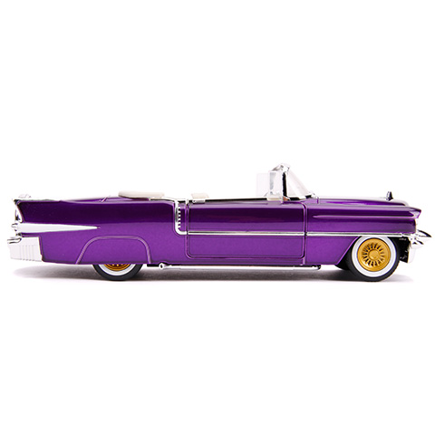 Elvis Presley elképesztően sikeres lett, és méltán megérdemelte a Rock & Roll királya címet, és egészen biztos, hogy minden rajongója örülni fog egy ilyen autómodellnek, ami az énekes egyik legismertebb kocsija. Az 1956 Cadillac Eldorado lila színével és Elvis figurájával igazi gyűjtői darab. A Simba Toys 1/24 méretarányú járgánya a legapróbb részletekig megegyezik a filmben látható autóval, amit a nyitható ajtók még izgalmasabbá teszik, így játékra épp olyan szuper választás, mint a film rajongók számára, hogy a polcra feltegyenek egy ilyen ikonikus modellt.