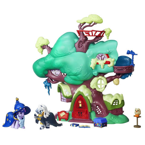 Twilight Sparkle és Zecora javában készülnek a Rémálmok éjszakája jelmezversenyre, és néhány kiegészítőért beugrottak a hatalmas Aranytölgy könyvtárba, hiszen egyikük úgy tervezte, hogy varázslónak fog öltözni, és ahhoz a jelmezhez mindenképp illene néhány vaskos könyv, ami a varázstudományokat rejti. A készletben természetesen megtalálható a tölgyfa, amelyben a pónik a könyvtárat kialakították. A két kis póni, Twilight Sparkle és Zecora is része a készletnek, ahogy a jelmezük és megannyi kiegészítő is. Különleges kalandok és mesébe illő történetek várnak rád, ha te is csatlakozol a két kis pónihoz a Rémálmok éjszakája jelmezverseny alkalmából.