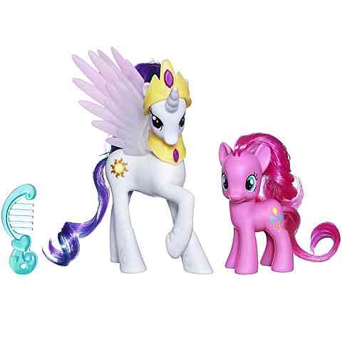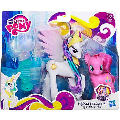 Tartalmazza a Celestia Hercegnő és Pinkie Pie póni figurákat, egy fésűt, valamint fejdísz és nyaklánc kiegészítőt.