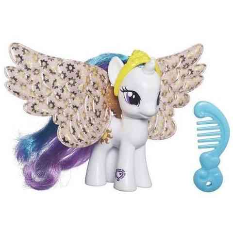 Celestia hercegnő hófehér szőre és csodaszép sörénye igazán uralkodói megjelenést kölcsönöz a kis póninak, azonban ezekkel a különleges szárnyakkal most végképp fejedelmi megjelenése lesz. Illeszd a szárnyakat Celestia hercegnő hátára, és máris az egekben szárnyalhat, hogy onnan nézze meg csodálatos birodalmát. A szép hatalmas szárnyak mellett egy tiara is része a készletnek, így hercegnőhöz méltó módon jelenhet meg. A fésűvel pedig mindig szép és kifésült sörény és farok jellemzi majd ezt a csodaszép pónit.