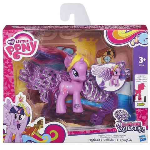 Twilight Sparkle az egyik legkülönlegesebb poni, hiszen szárnyai és szarva is van, és nem utolsó sorban neki van a legszebb színű sörénye. Ez a nagyszerű póni figura azonban most még szebbé varázsolja a különös pónit, hiszen ez alkalommal igazán gyönyörű szárnyakkal hasíthatja Twilight az eget. A szép hatalmas szárnyak mellett egy tiara is része a készletnek, így hercegnőhöz méltó módon jelenhet meg. A fésűvel pedig mindig szép és kifésült sörény és farok jellemzi maj ezt a csodaszép pónit.