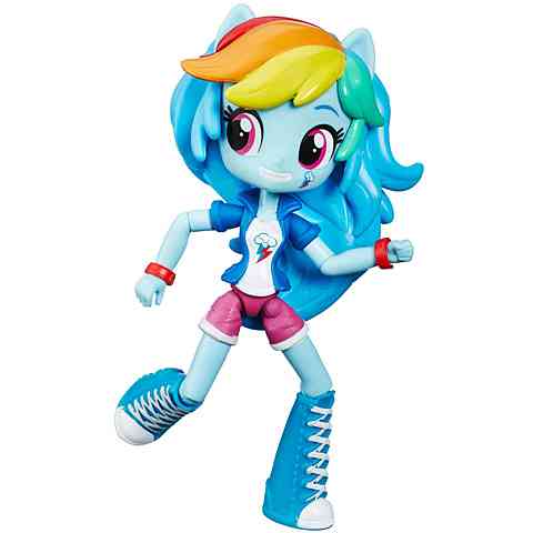 Vitathatatlanul az Én kicsi pónim mesék legszínesebb egyénisége Rainbow Dash, aki az Equestria Girls csajok csapatának is tagja természetesen. A szivárvány minden színében pompázó sörénye különleges megjelenést biztosít neki, amit a mini babán is megfigyelhetsz. A Rainbow Dash baba részletesen kidolgozott, így garantált vele a szórakoztató játékélmény.